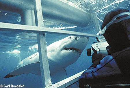 I have been privileged for more than thirty years to visit with my friends Rodney and Andrew Fox in South Australia each year, during which visits we would go out and photograph great white sharks. Rodney and Andrew know more about these creatures from direct observation than anyone in the world.